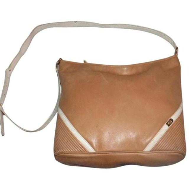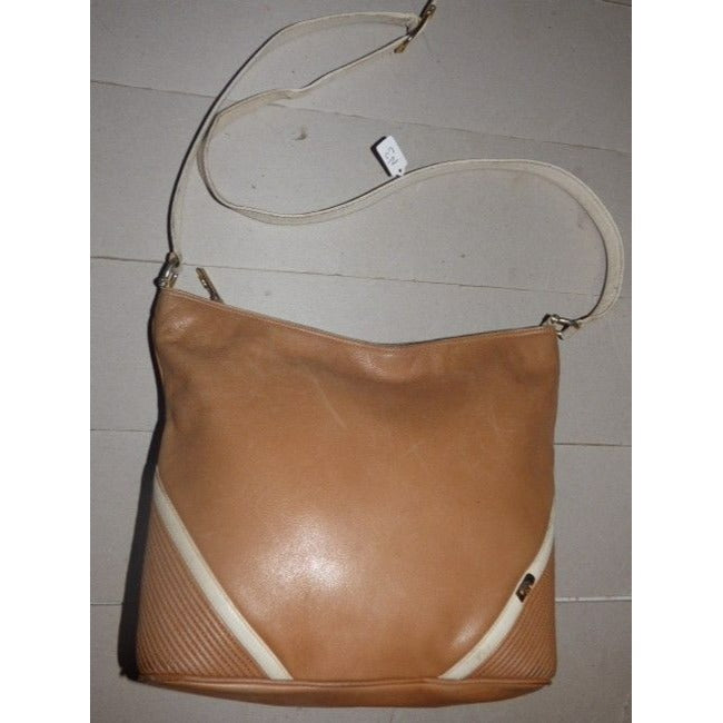 Gucci Vintage Camel Leather With Ivory Accents Satchel
