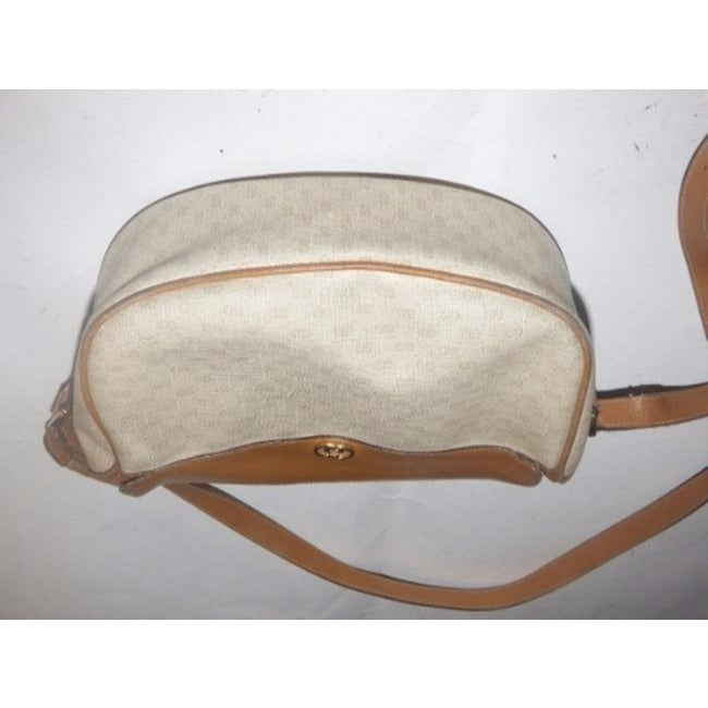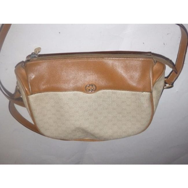 For sale is a vintage, Gucci, cream and camel coated canvas with camel small G logo design & leather, cross body/shoulder bag! This is a quality classic from Gucci that will be the only beige purse you will need!