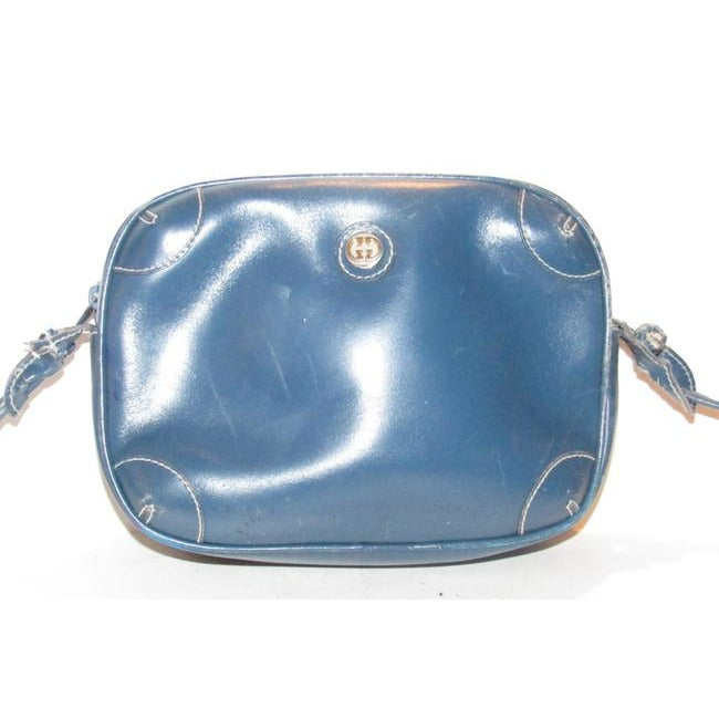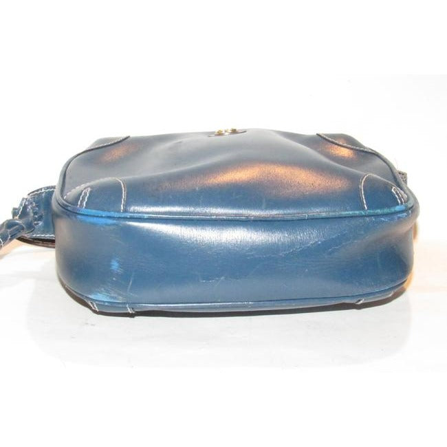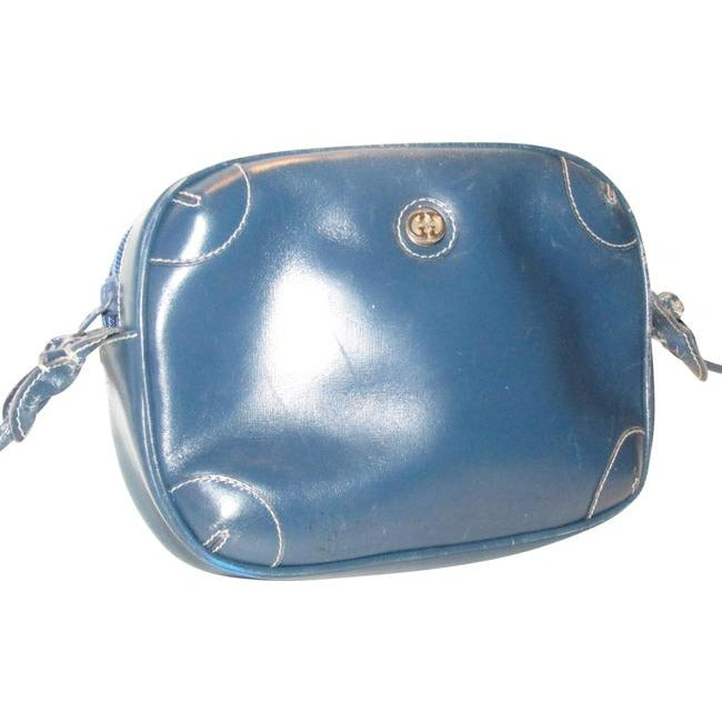 Gucci Vintage Cobalt Blue Leather With White Contrast Stitching