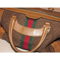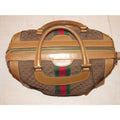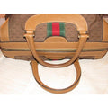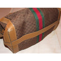 For sale is a vintage, early Gucci, brown micro Guccissima print fabric and camel leather, XL satchel or Boston/Speedy bag with red/green center stripe accent around the bag! This is a super rare purse from Gucci with a timeless style!