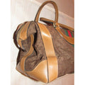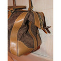 Gucci Vintage Dark Brown Small G Logo Print Fabric And Camel Leather With Red