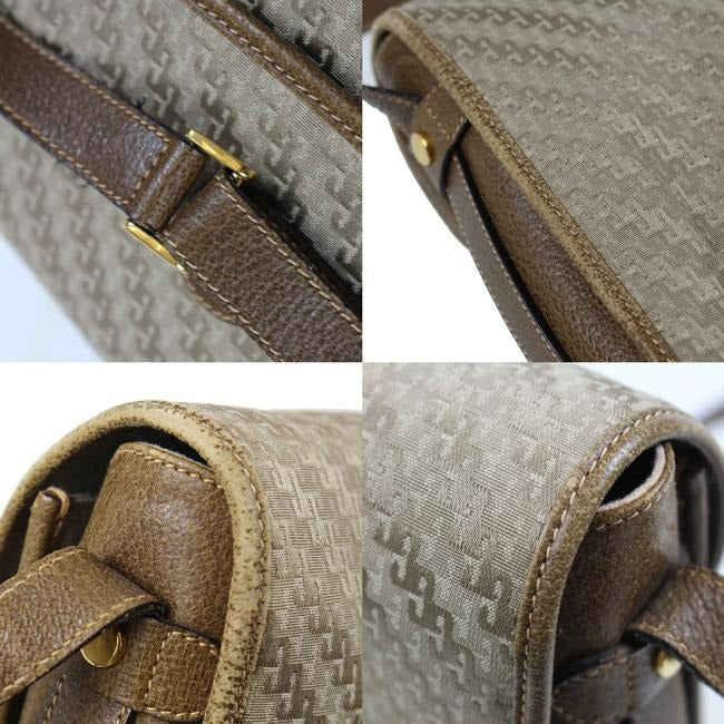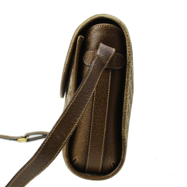 Gucci Vintage Dark Khaki Square G Logo Print Canvas And Camel Leather Cross Body