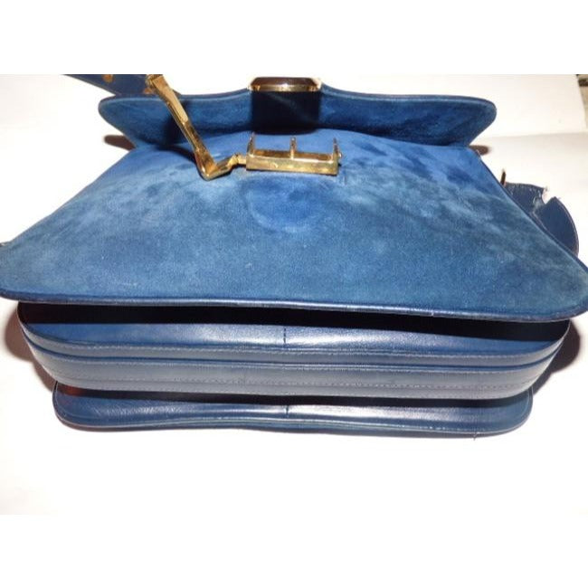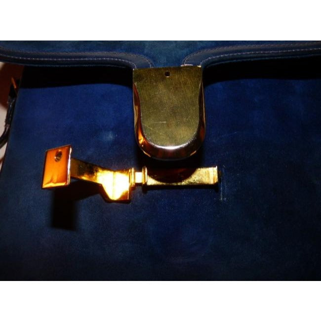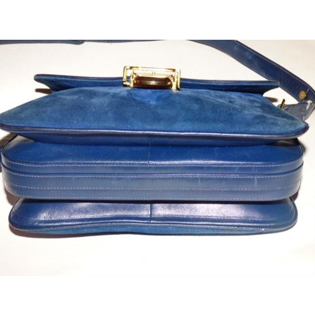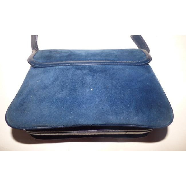 Gucci Vintage Deep Blue Suede And Leather Shoulder Bag