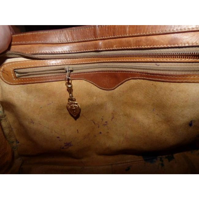 It has two handles and is called a 'speedy bag' or doctor's satchel. This is one of the more rare versions of the satchel style and is an early take on the Gucci classic. The bag is made of a brown, small 'G' style logo print coated canvas and leather. There is a zip closure on top that wraps around the sides and buckles on the sides for more room. I have some of the other versions of Gucci's satchel in browns and blues for sale in other ads.