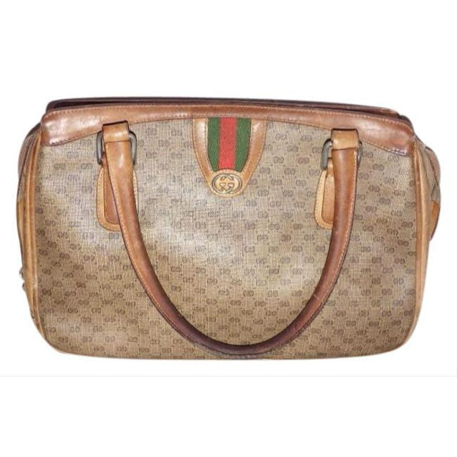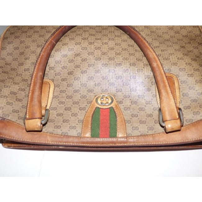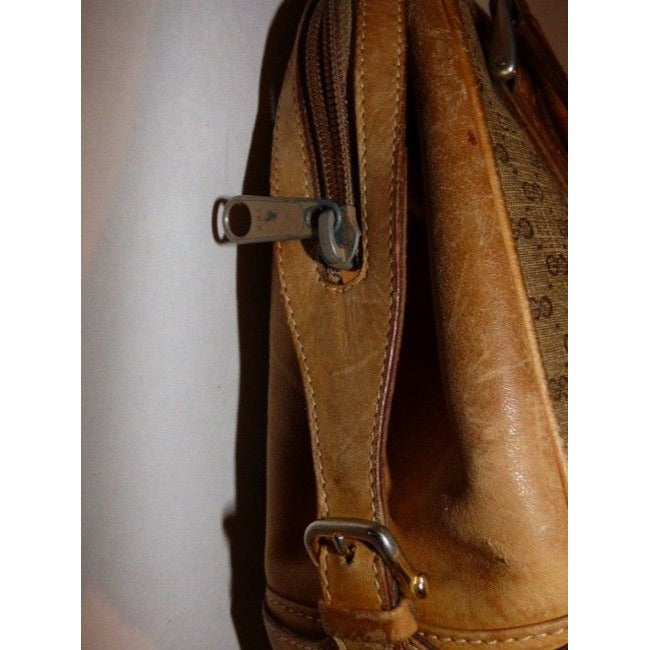 Gucci Vintage Gg Brown Small G Logo Print Coated Canvas And Brown Leather