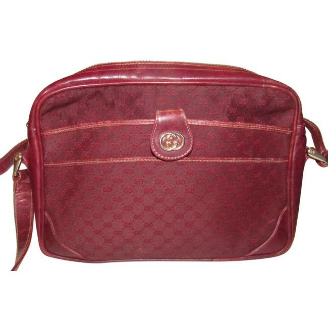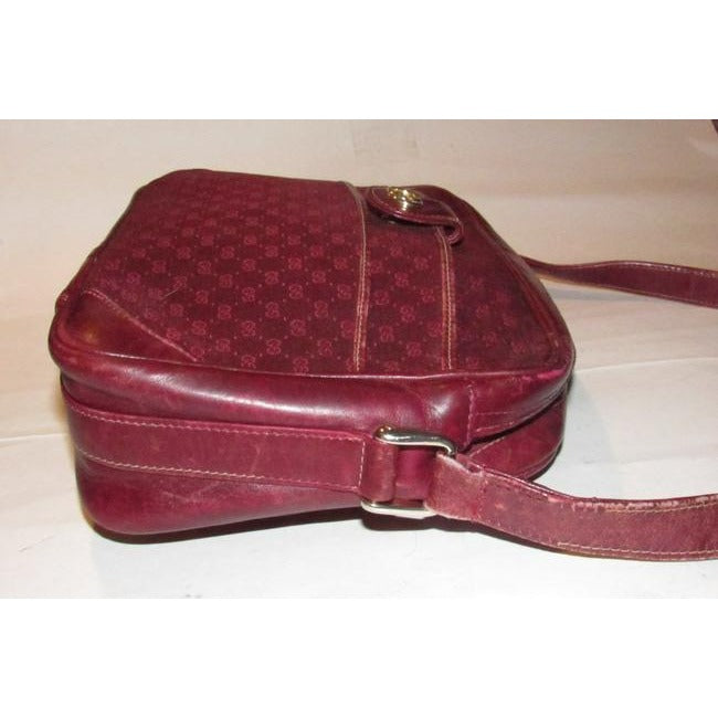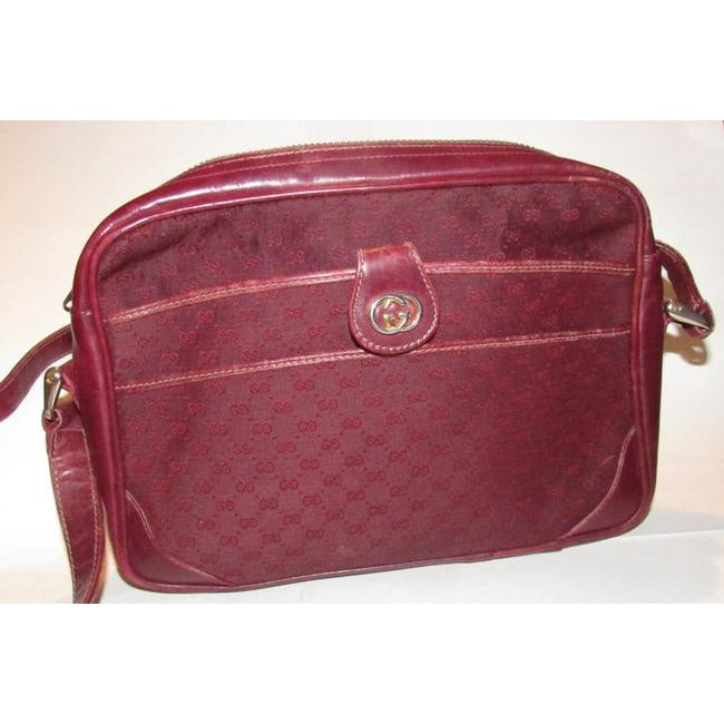 Gucci Vintage Gg Burgundy Small G Logo Canvas And Burgundy Leather