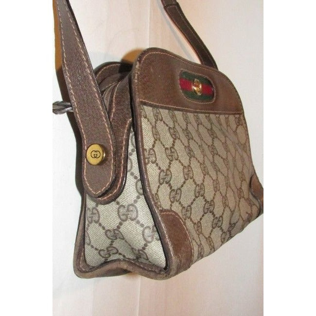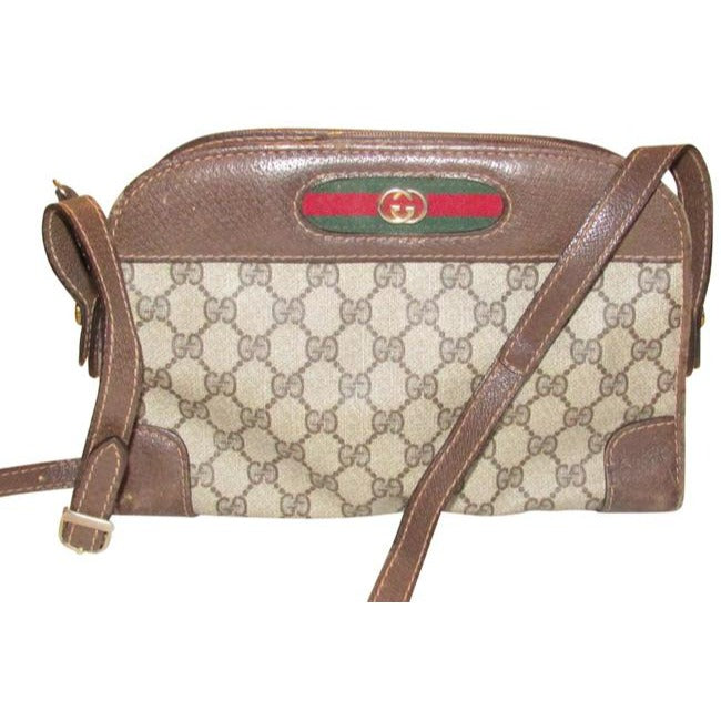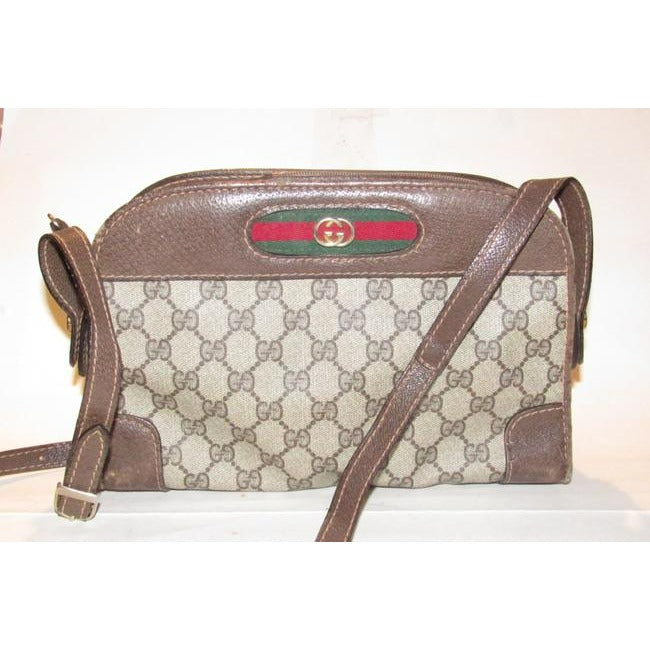 Gucci Vintage Gg Web Brown And Large G Logo Print Coated Canvas