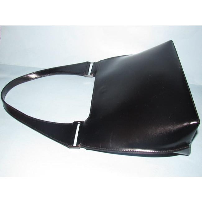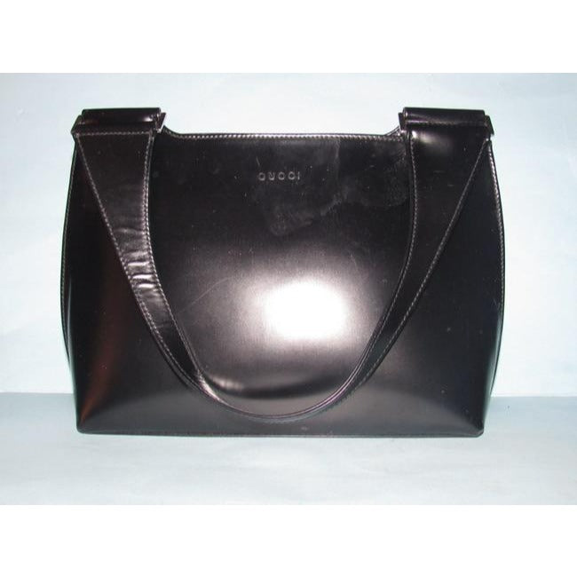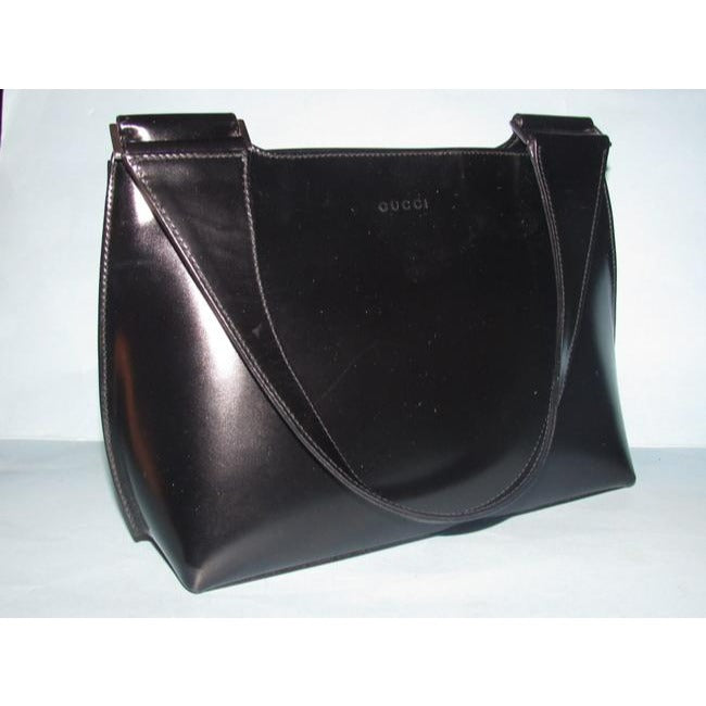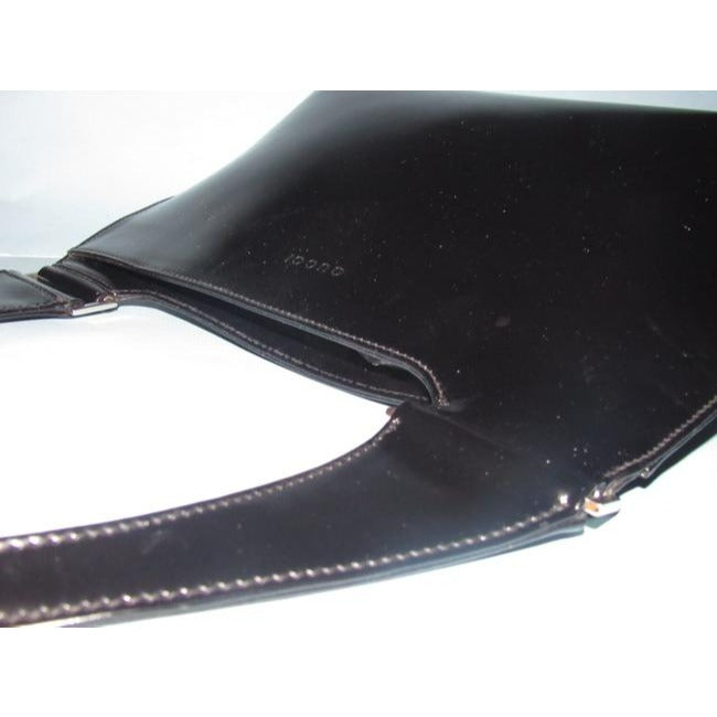 Gucci Vintage Glossy Black Leather Shoulder Bag