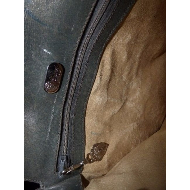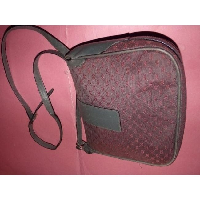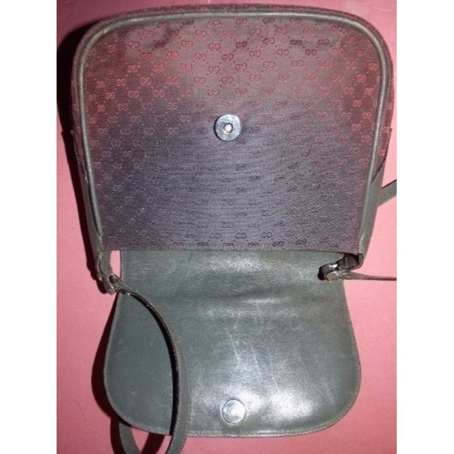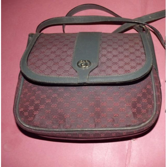 Gucci Vintage Grey Leather And Canvas With Pinkish Red Small G Logo