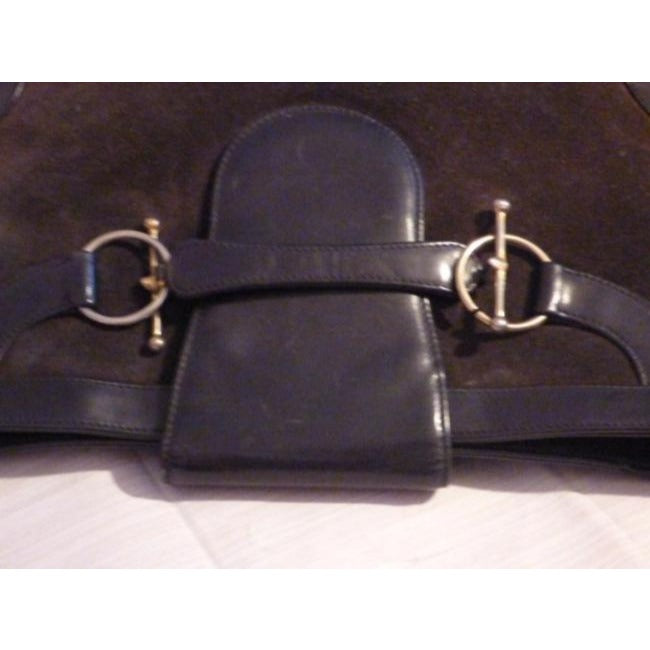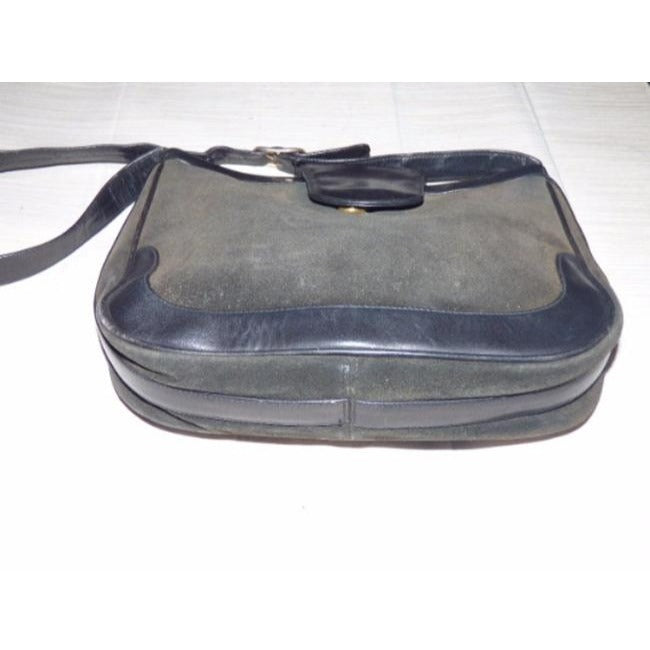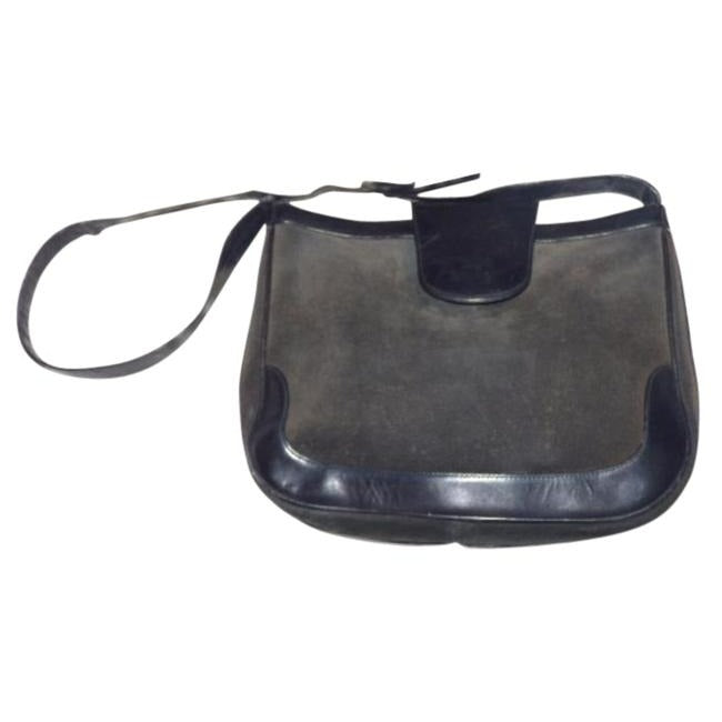 Gucci Vintage Grey Suede Navy Leather Hobo Bag
