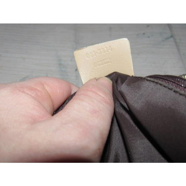 The interior is lined in brown, Gucci logo fabric with a zip close pocket. It is very clean with the Gucci, Made in Italy tag and a serial # of 001.3814.002122. It comes with its silky G logo dust bag, too!