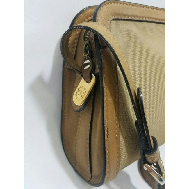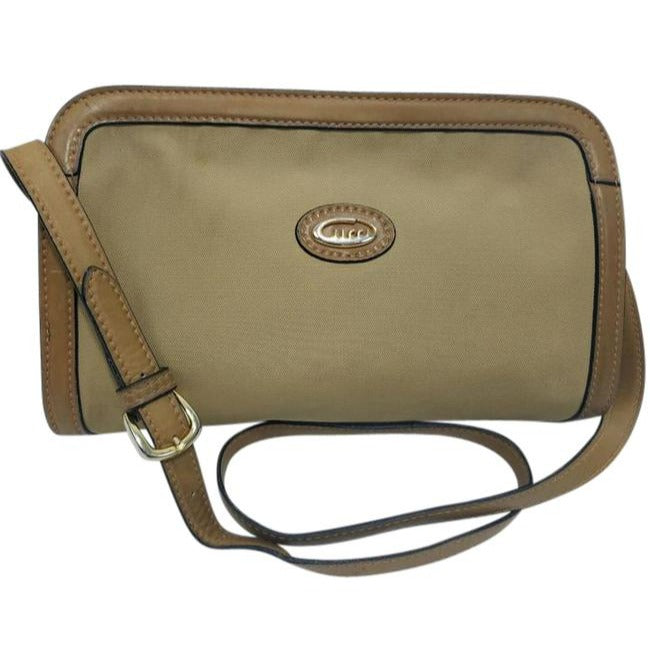 Gucci Vintage Khaki Canvas And Leather Canvas Shoulder Bag