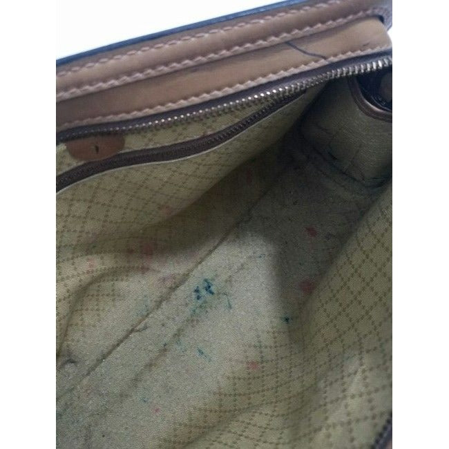 This purse would be a fantastic addition to any collection! The purse is in amazing condition - this is the only tan/neutral purse you will ever need! The only issue is with the yellow fabric diamond print lining which has stray pen marks- see pictures.