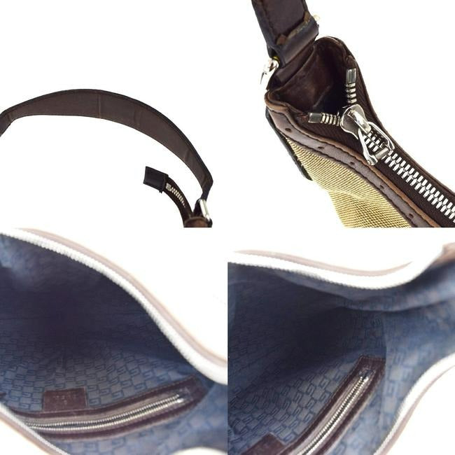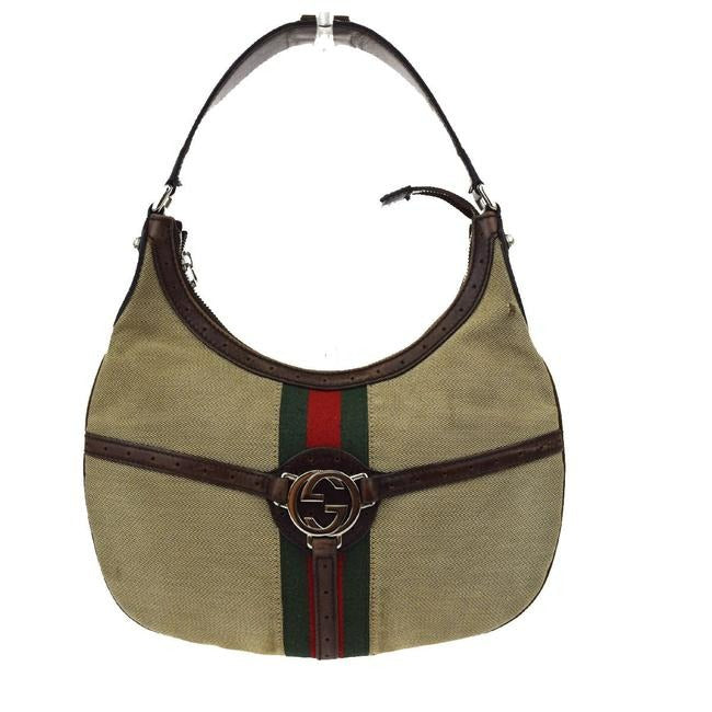Gucci Vintage Khaki Canvas W Red Green Accent Leather Canvas Hobo Bag