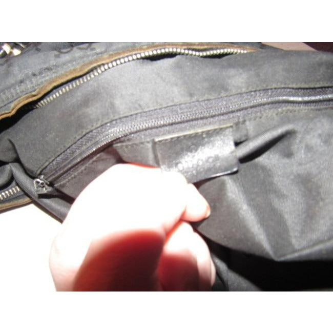 The bag is the perfect, large size, top handle purse by Gucci! The purse is a fabulous and unique, black large G logo print canvas with black leather framing the sides and as the bottom. It has a black, leather handle and bold chrome accents with a zip top closure. It has the true 1960's Gucci mod look!