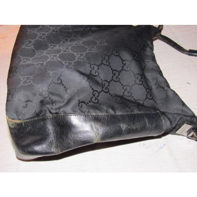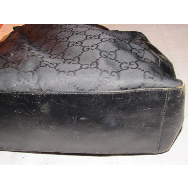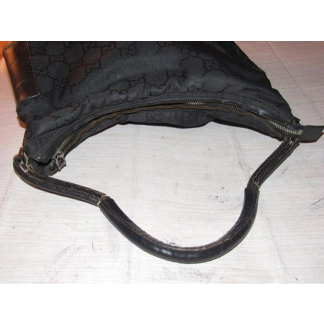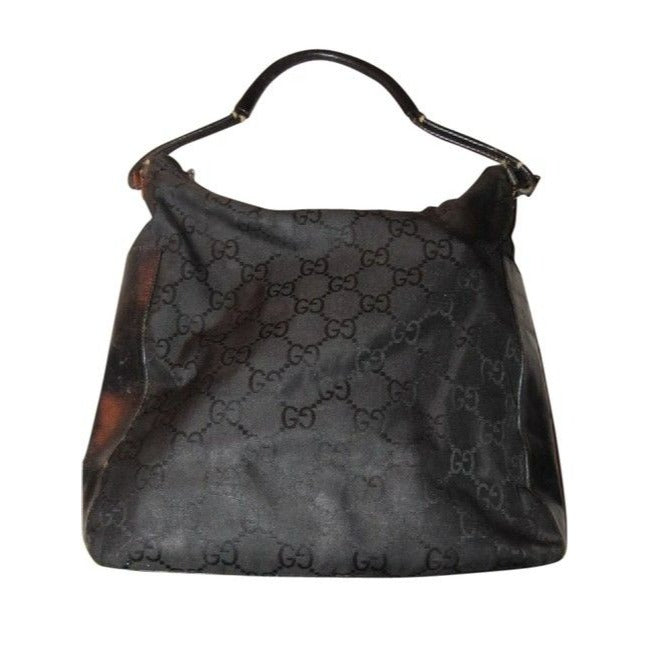 Gucci Vintage Large G Logo Print Canvas And Black Leather Accents Hobo Bag