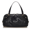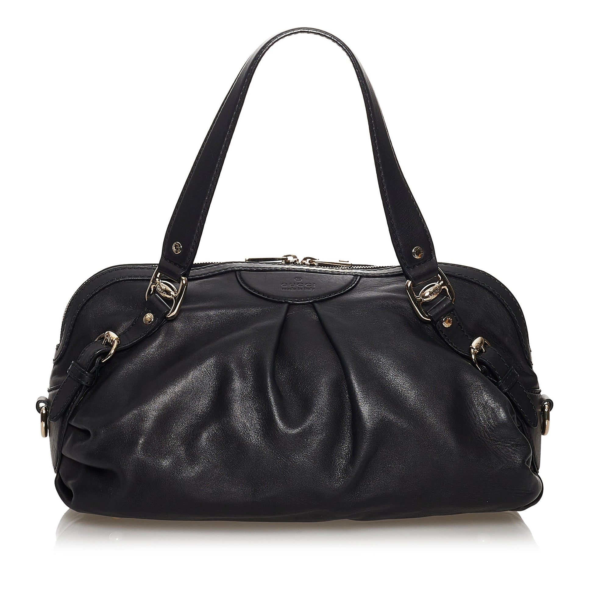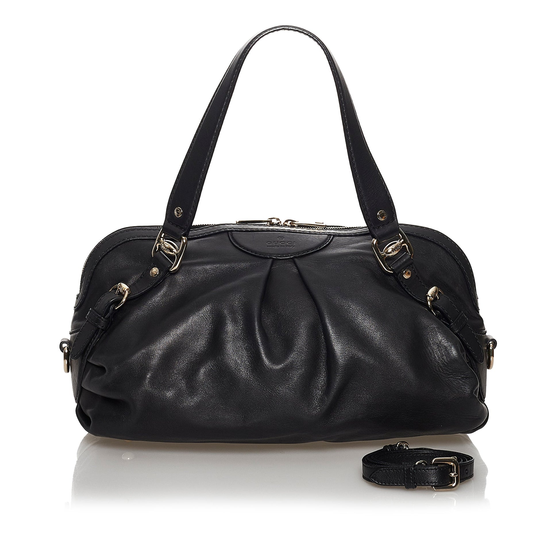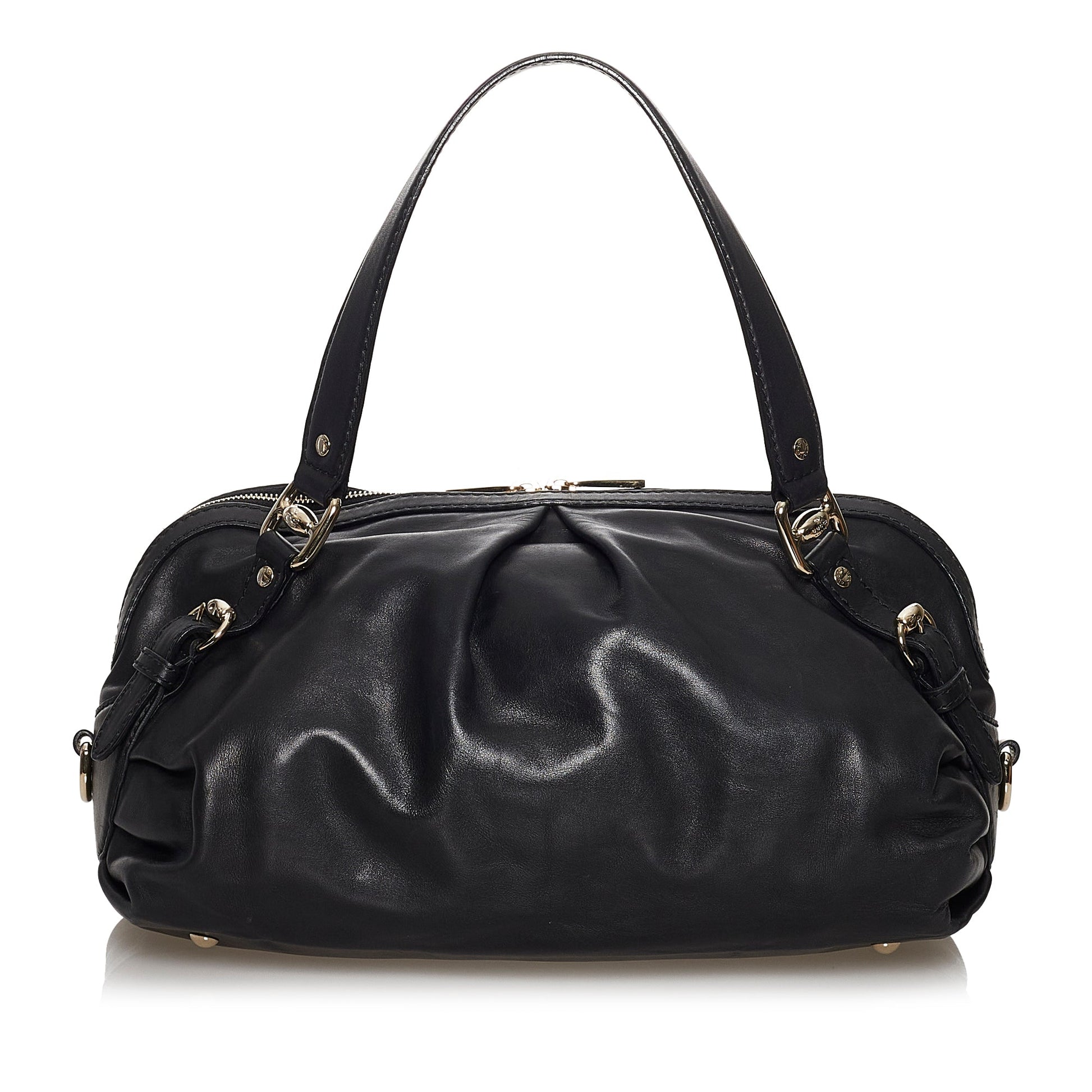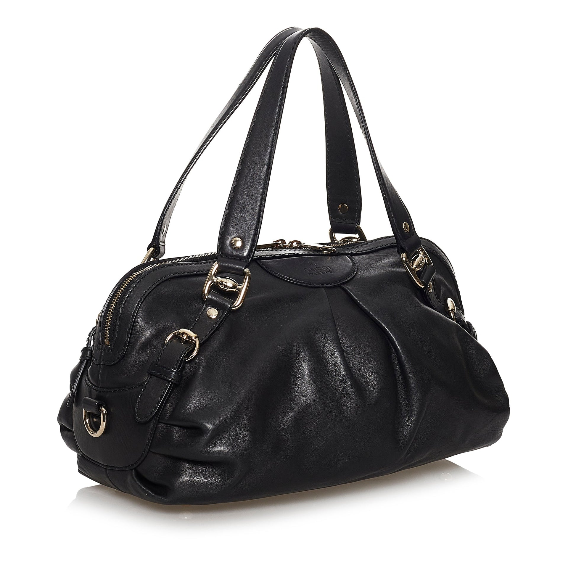 This satchel features a leather body, flat leather handles, flat leather strap, a top zip closure, and an interior zip pocket.