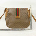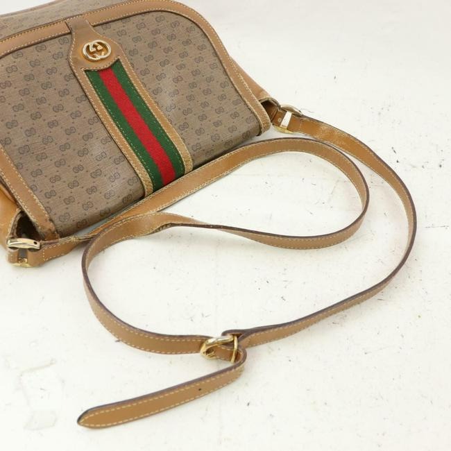 For sale is a vintage, Gucci, Sherry Line cross body/shoulder bag made of brown micro guccissima print on camel coated canvas with camel leather and red and green Sherry stripe with an envelope flap top, gold hardware and a longer strap! This is a great looking, classic purse from Gucci with a timeless style!