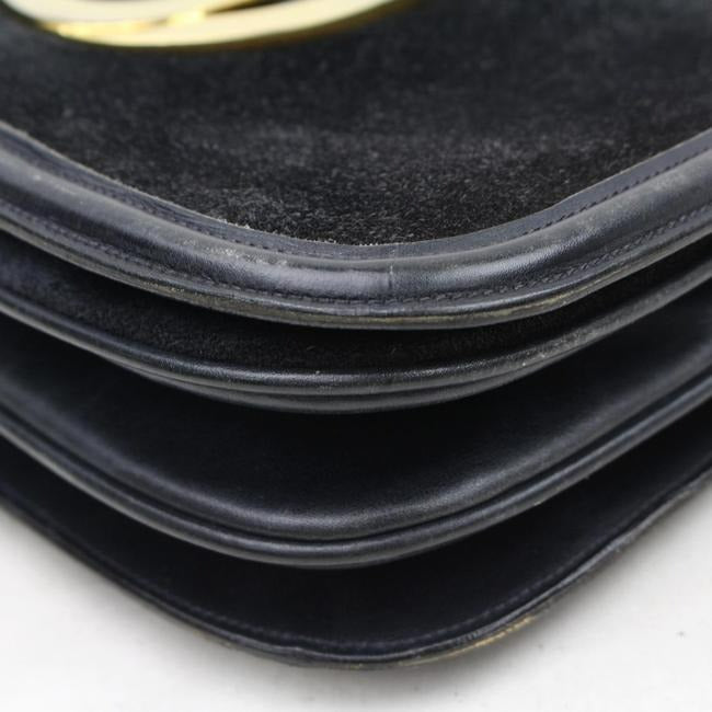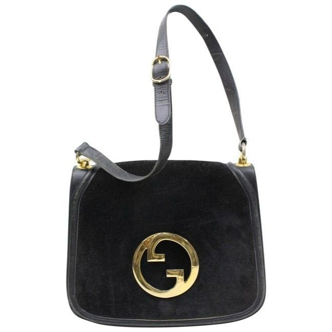 * For sale is a vintage, rare, delicious midnight blue --> black suede, Gucci 'Blondie', shoulder bag with large, gold 'GG' emblem & matching leather trim, and multiple compartments! l It is a rare style and that is even more rare in suede and leather and would be great used as a signature style purse!