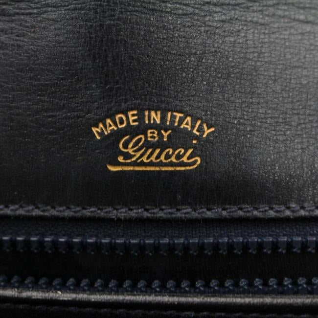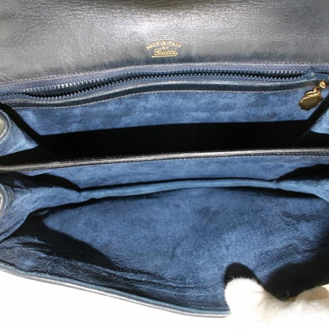 The bag is a large, envelope style, shoulder purse. It has two interior compartments with a zip pocket. The purse is made of buttery soft leather in midnight blue/black- it looks more blue or black depending on the light. To close, there is a snap below the open, large GG medallion. The strap is adjustable in length and there is minimal wear to the exterior. There is very little wear on the piping or strap- the owner took excellent care of this purse. This is the Rolls Royce of vintage Gucci purses!