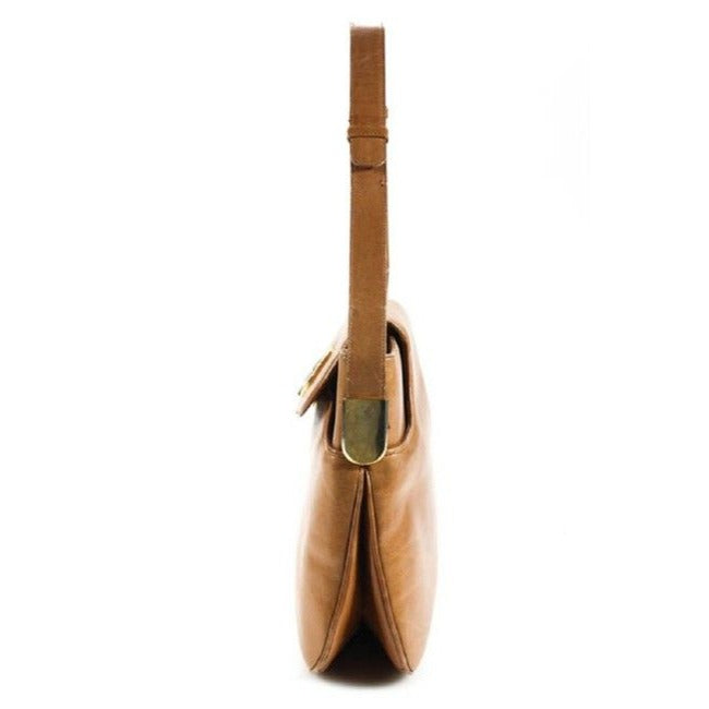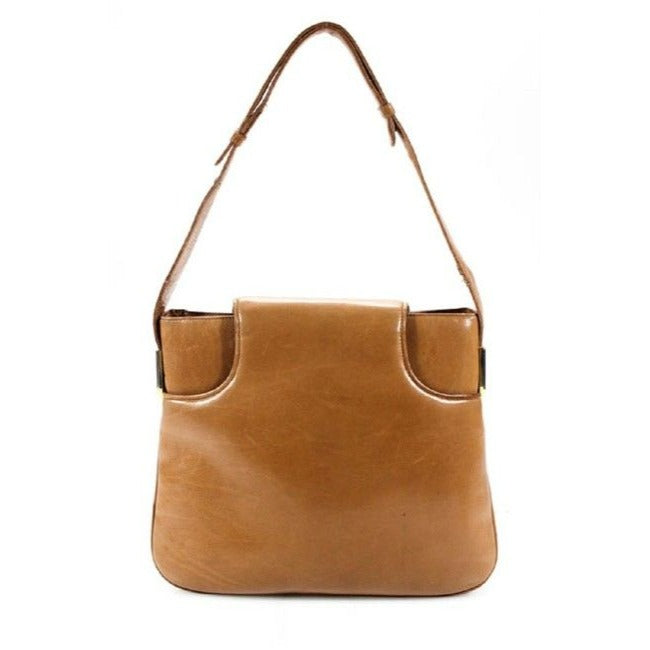 Gucci Vintage Mod Snap Lock Gold GG Camel Leather Bag