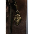 The bag has minimal wear to the lining. The purse is roomy and has an organized design that is perfect for carrying all of your essentials and then some! It has a flap snap top closure, multiple compartments, and multiple slot and zip closure pockets. The bottom is expandable, so it can hold quite a bit! The strap can be adjusted to two lengths and is held in place by a bold gold accent on each side. The hardware is a gold tone metal.