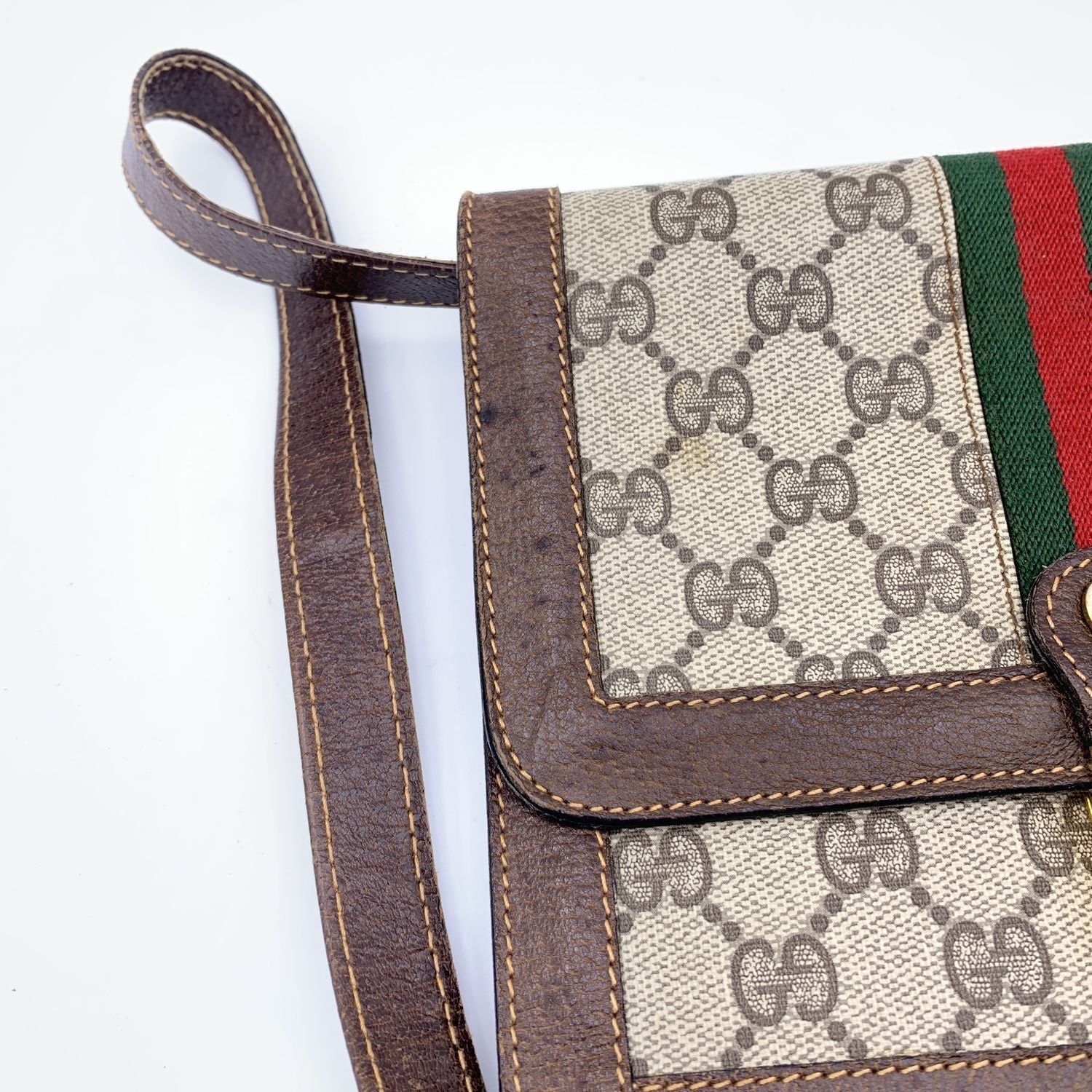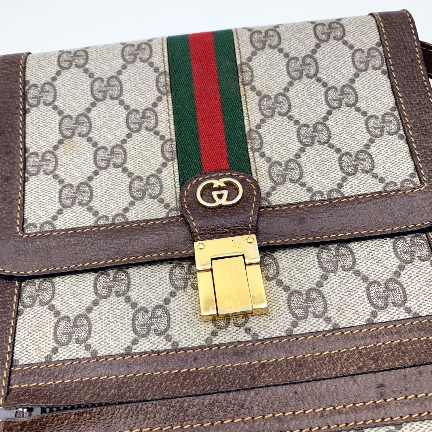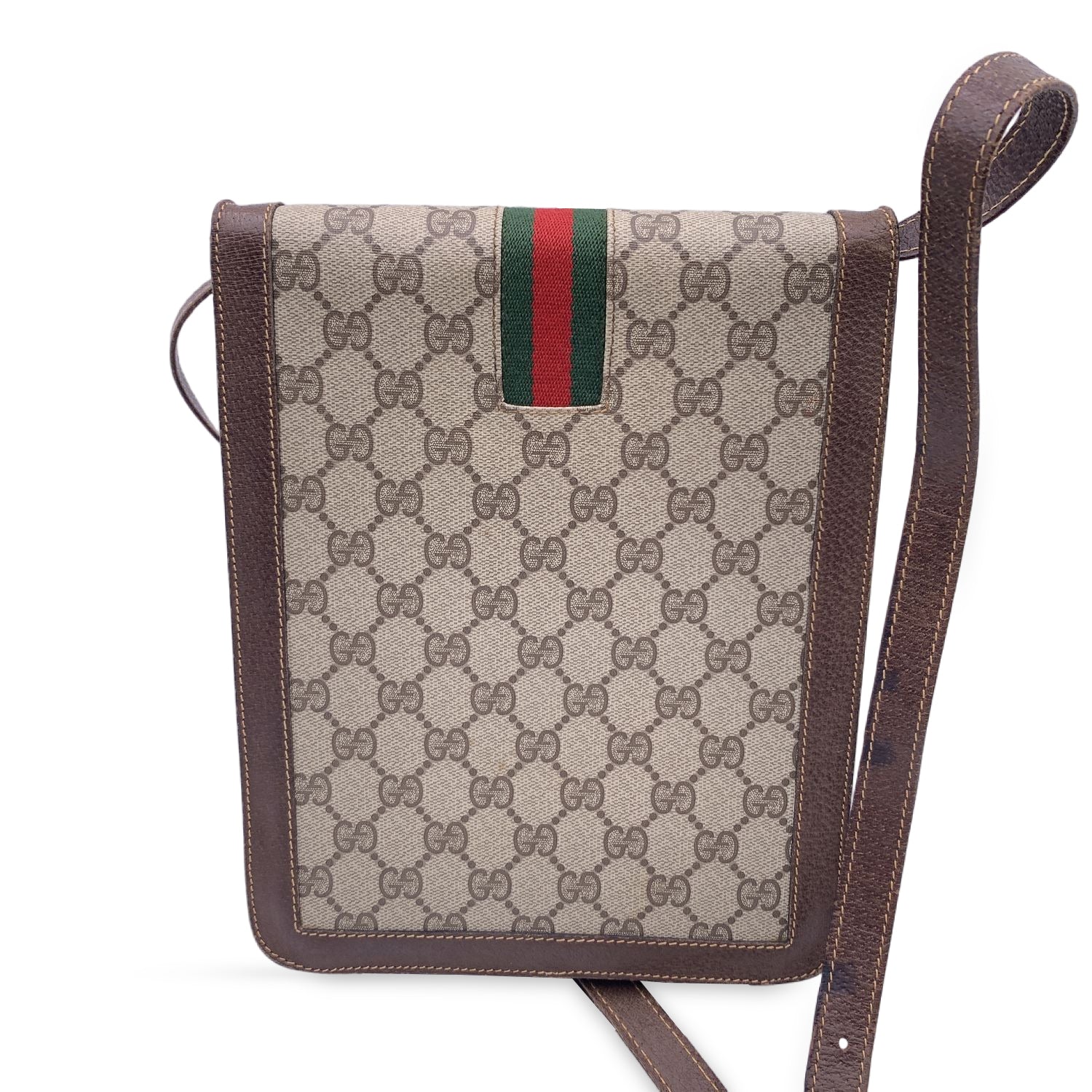GUCCI Vintage Monogram Canvas Vertical Shoulder Bag With Stripes