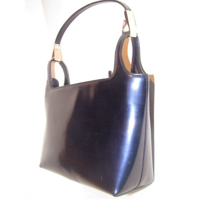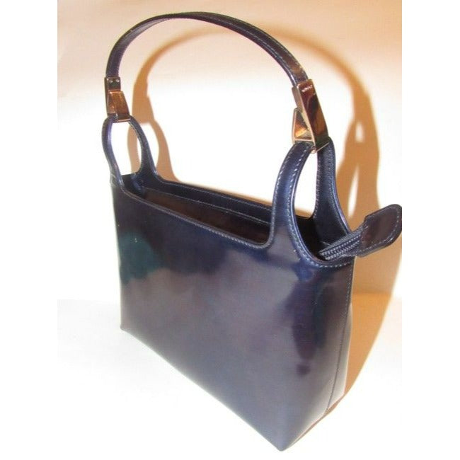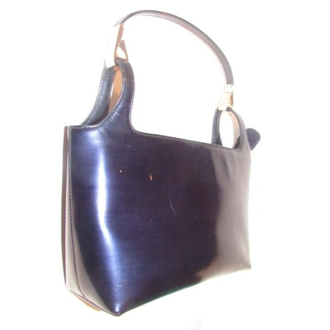Gucci Vintage Navy Blue Glossy Patent Leather And Satchel