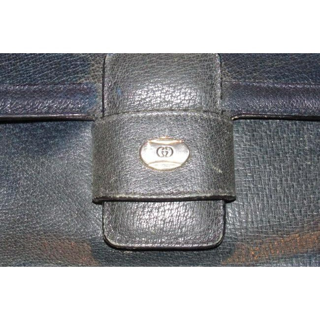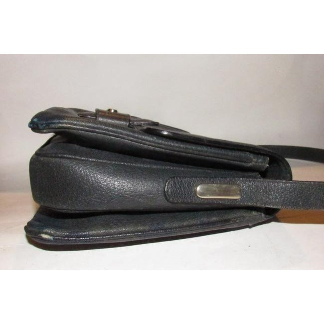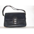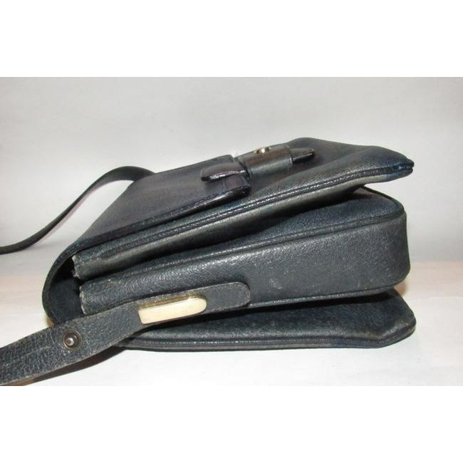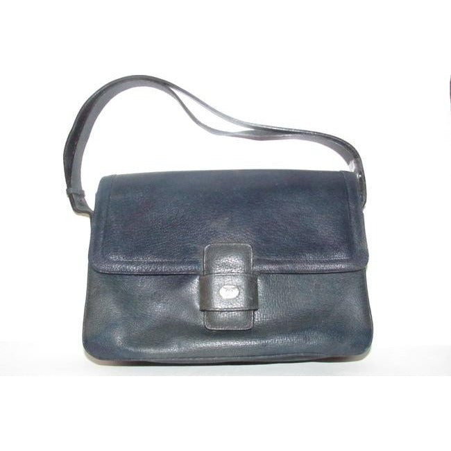 Gucci Vintage Navy Blue Leather And Gold Hardware Shoulder Bag