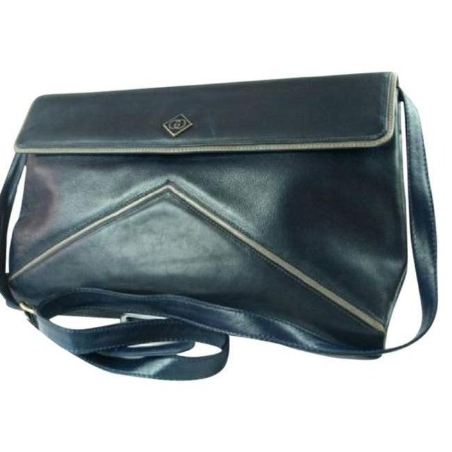 Gucci Vintage Navy Blue Leather With Grayish Lavender Trim Shoulder Bag