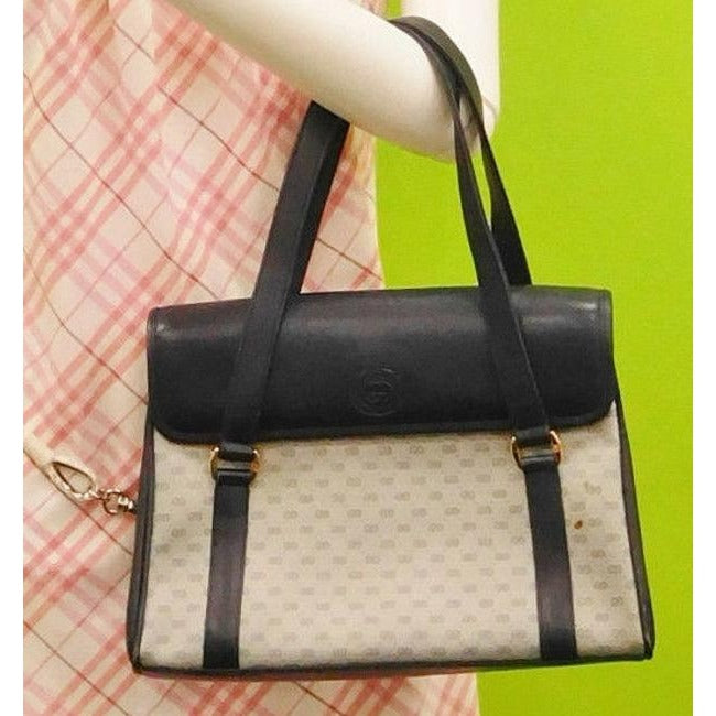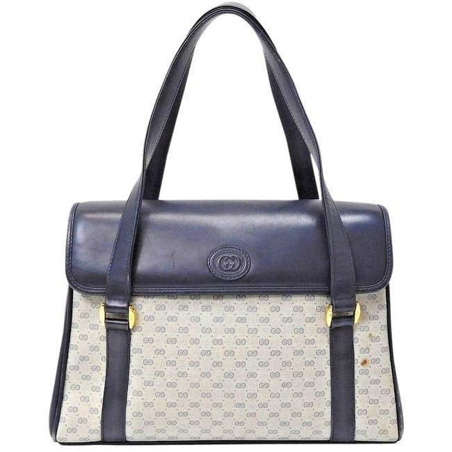 Gucci Vintage Navy Blue Small G Print Coated Canvas And Leather Satchel