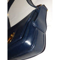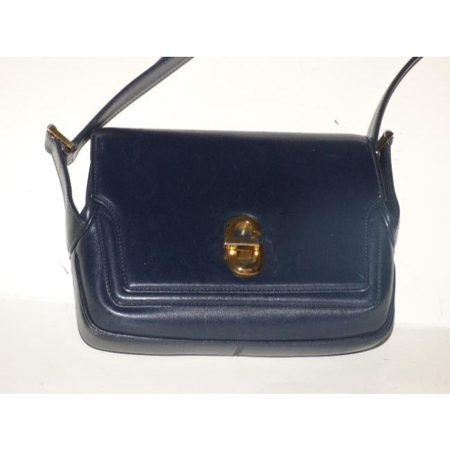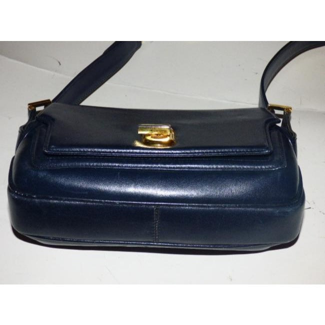 For sale is a Gucci, RARE, bohemian/mod, navy blue leather, envelope top, shoulder purse with bold gold tone accents and a 'G' twist closure at the center! This is a rare, early style, purse from Gucci that will be the only blue purse you will need!
