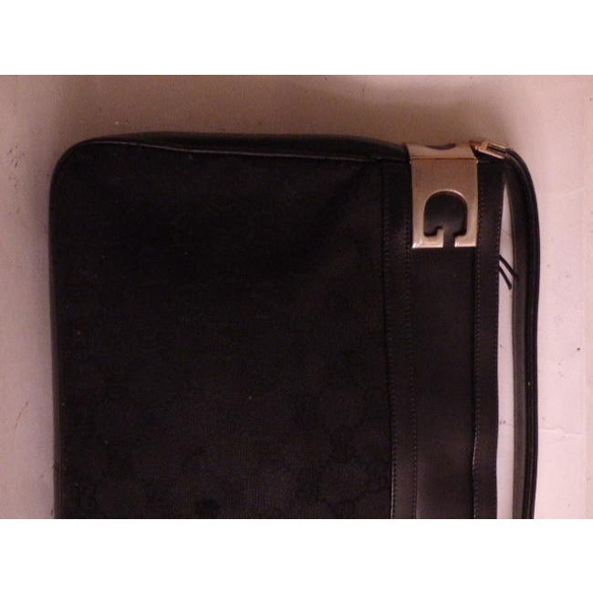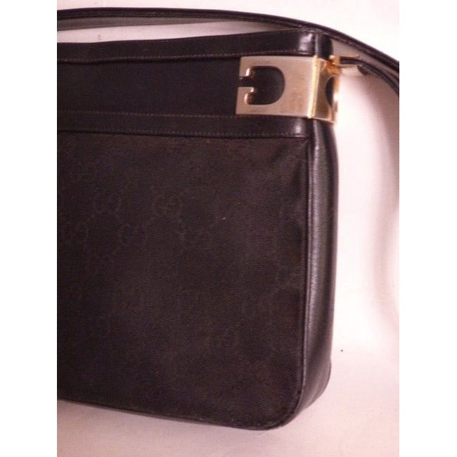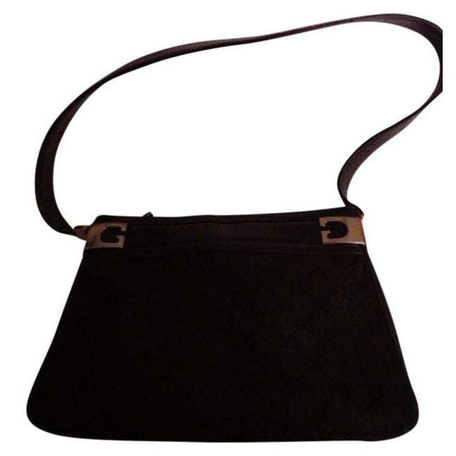 The bag has a large logo design in black canvas and black leather top. strap and piping. It is a zip top,hobo style shoulder bag style with faded gold tone GG accents.. It has all of the details an authentic Gucci should, like the YKK zipper, stamped hardware, and pre-dates serial numbers but is embossed with a gold 'Gucci, Made in Italy stamp.