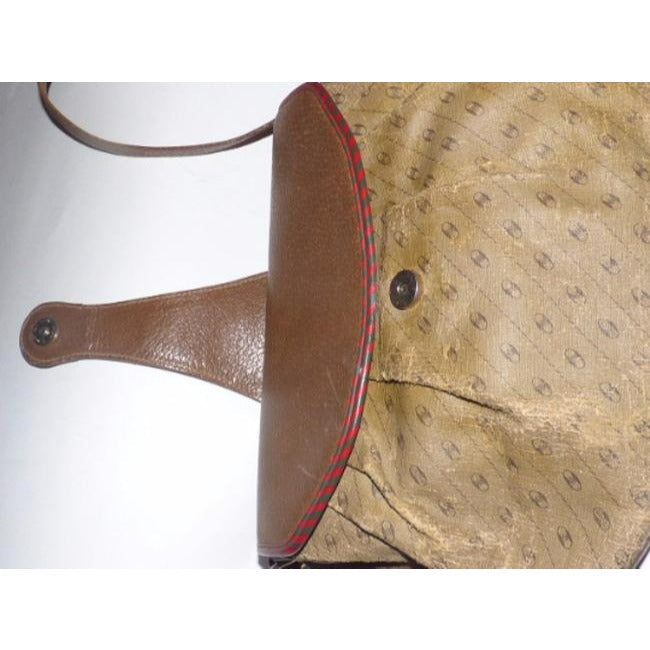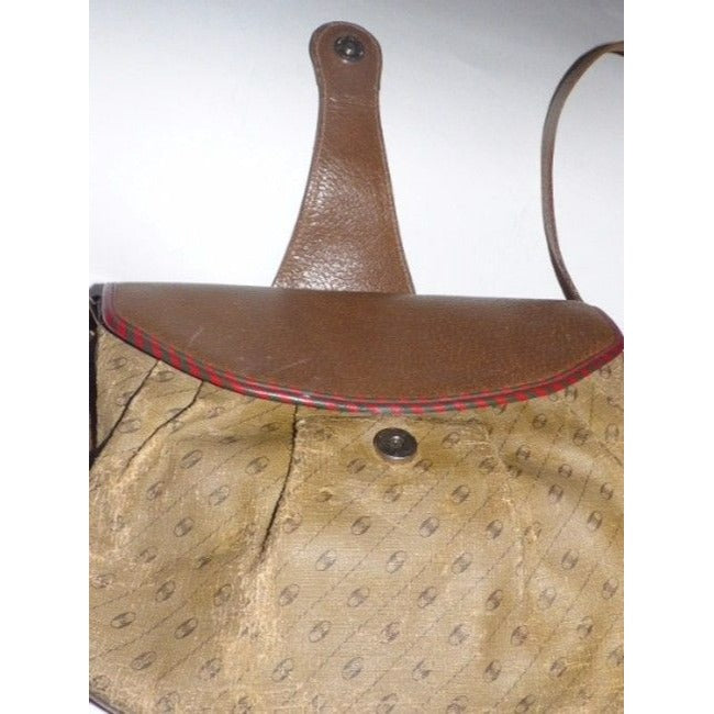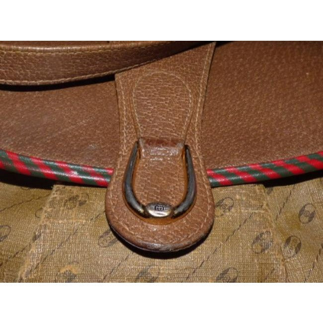 Gucci Vintage Purses Coated Canvas Leather In Browns With Red Green Leather Coated