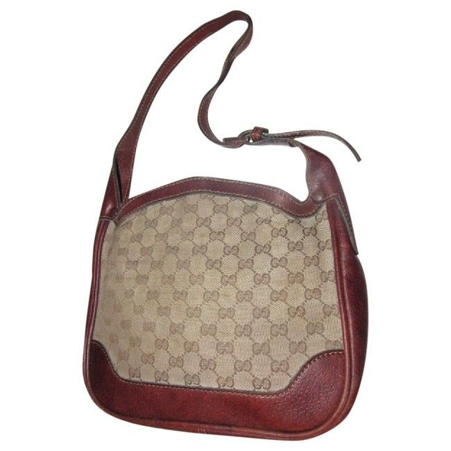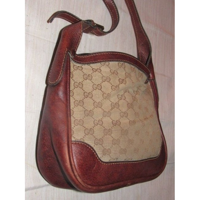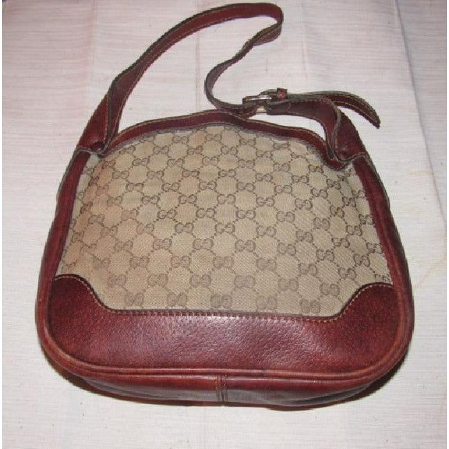 Gucci Vintage Purses Designer Purses Brown Large G Logo Print Canvas And Brown Leather