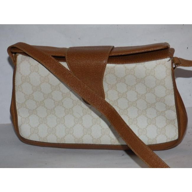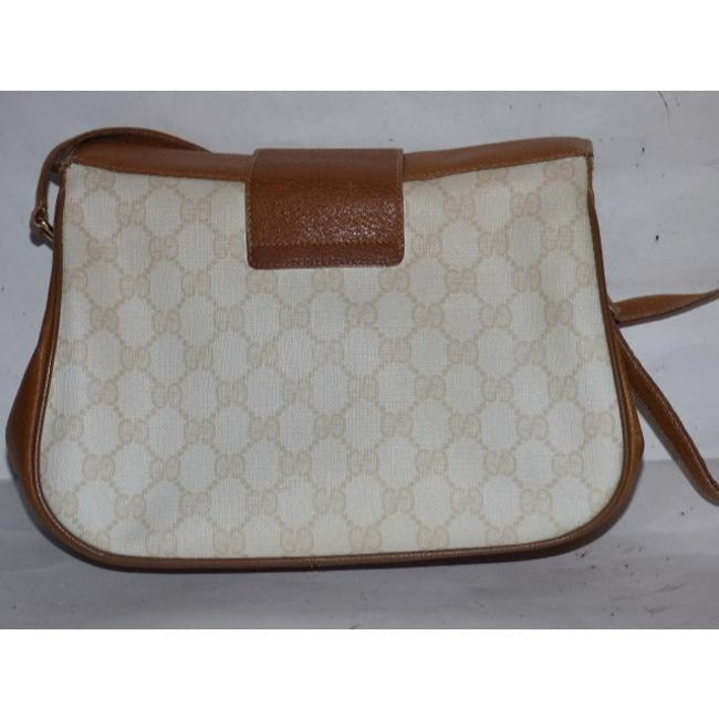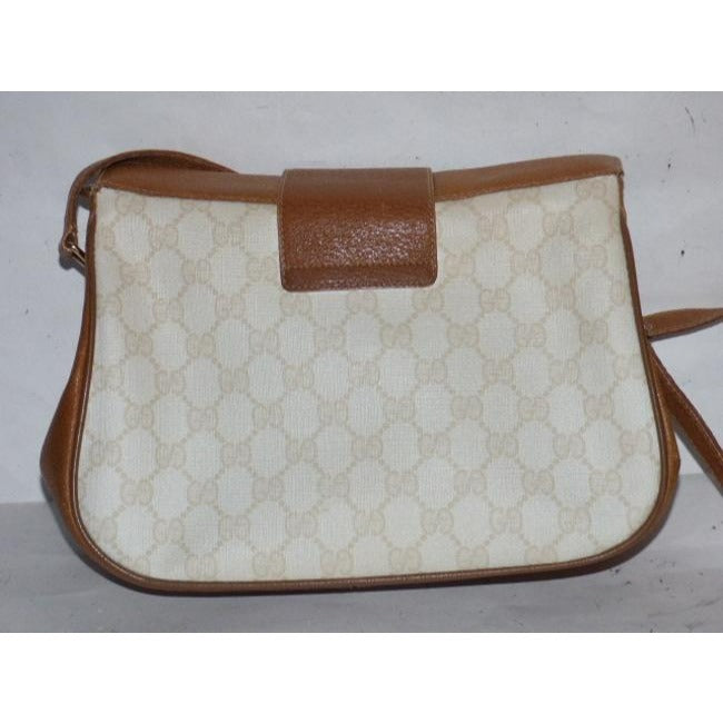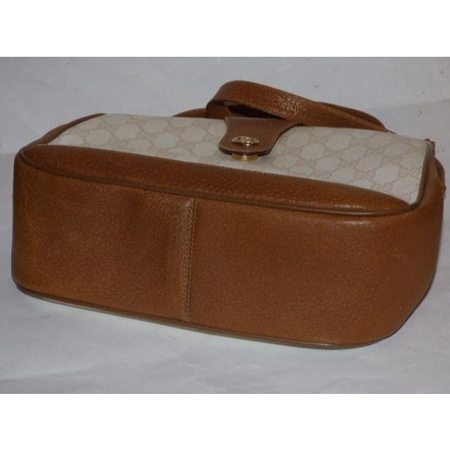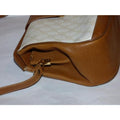Gucci Vintage Purses Ivory Coated Canvas With Camel Large G Logo Leather