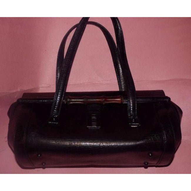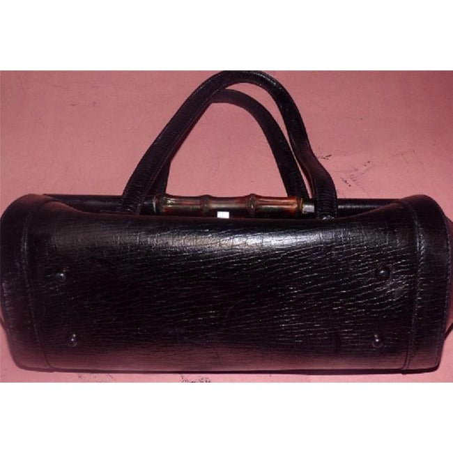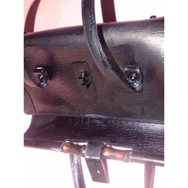 Gucci Vintage Pursesdesigner Purses Black Leather With Bamboo Accent Shoulder Bag