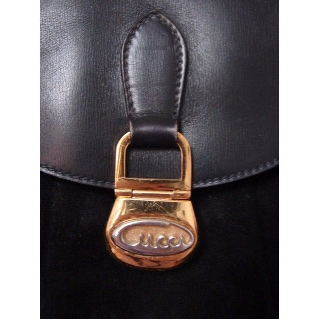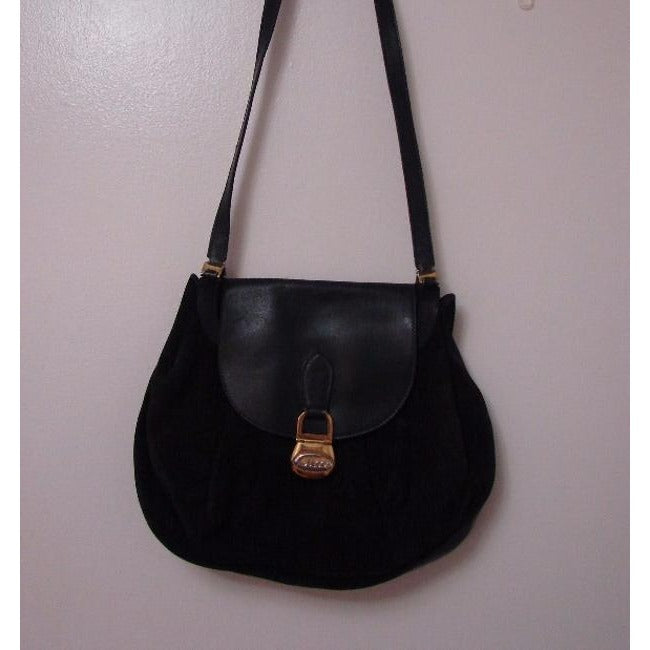 Gucci Vintage Pursesdesigner Purses Black Suede And Leather Shoulder Bag