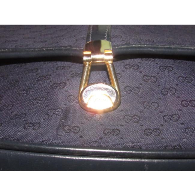 There is one compartment and a zip close pocket on the interior to keep you organized! The navy leather interior lining is extremely clean! The purse can expand on the bottom to hold more than you might think. It is a unique early Gucci that would be a great addition to any collection! It has its zipper fob and dust bag (though it may not be the original).