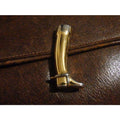 For sale is a Gucci, brown leather, large, asymmetrical, envelope top, two-way shoulder bag with a removable strap to become a clutch with a bold gold abstract cowboy boot clasp! It is a unique take on a classic envelope top style that would be great used as an everyday purse!