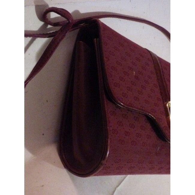 Gucci Vintage Pursesdesigner Purses Burgundy With Small G Logo Print Canvasleather And Shoulder Bag