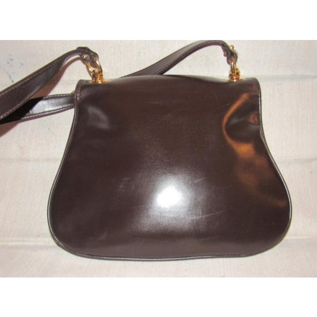 The bag is a large, envelope style, shoulder purse. It has one interior compartment with a zip pocket. The purse is made of buttery soft leather in chocolate brown The strap is adjustable in length and there is minimal wear to the exterior. There is very little wear on the piping or strap- the owner took excellent care of this purse.This is the Rolls Royce of vintage Gucci purses!