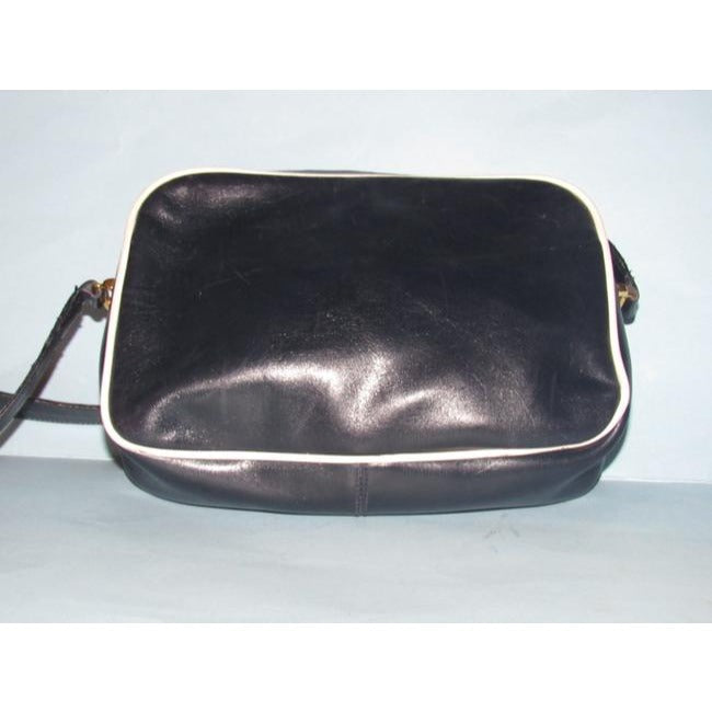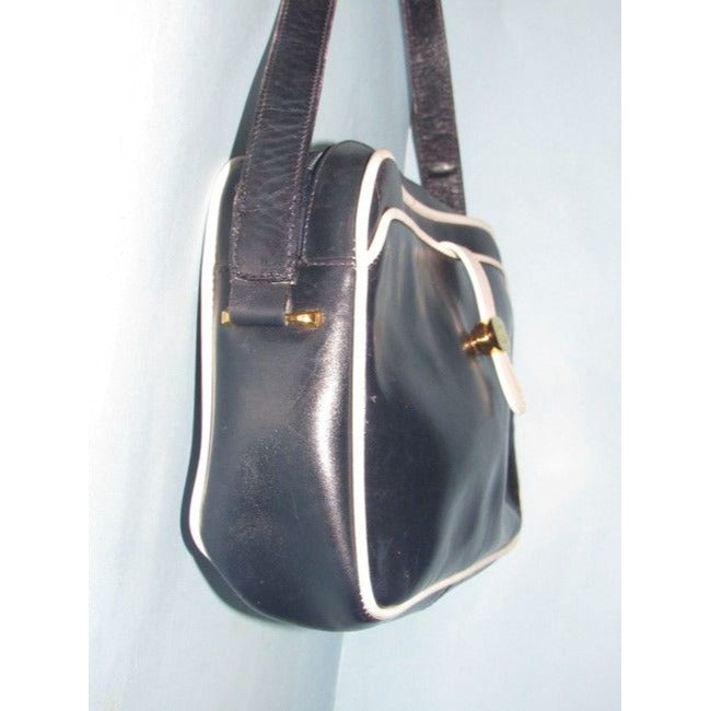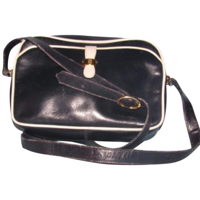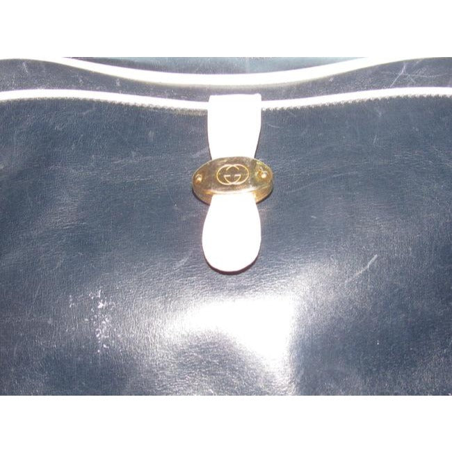 SALE! Gucci Navy Blue Leather With White Piping Shoulder Bag