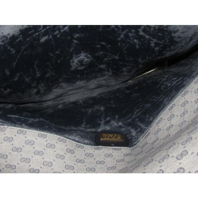 1970's -1980's Gucci Navy Blue Micro Guccissima Print Coated Canvas & Navy Leather Vintage XL Envelope Clutch