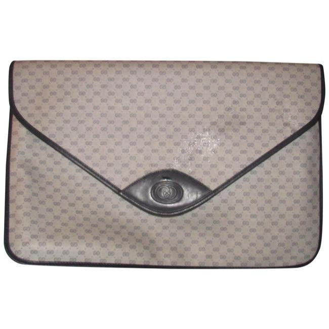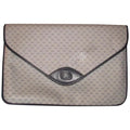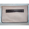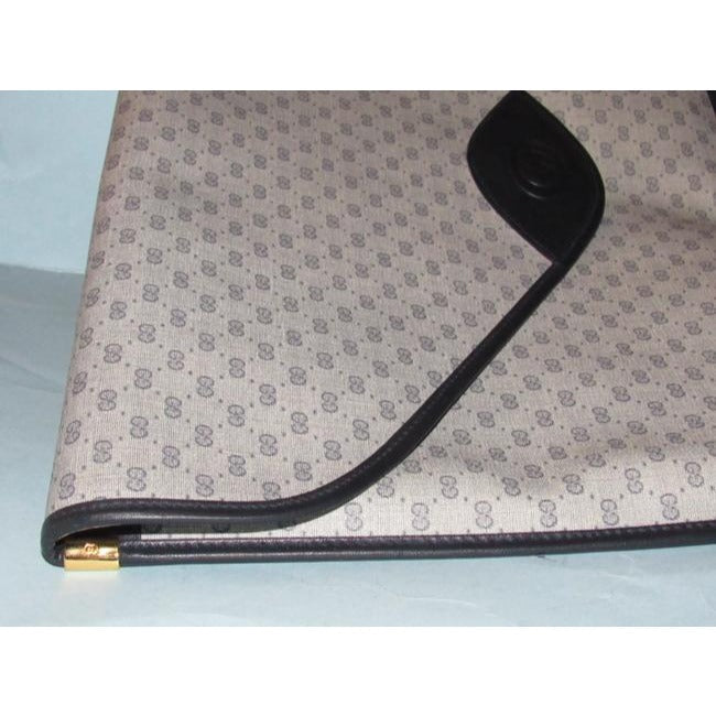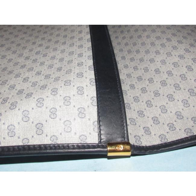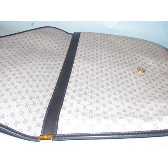 * For sale is a vintage, Gucci, small G logo print coated canvas and navy leather, extra large, envelope top, clutch purse with top snap closure! It is a classic style that would be a great used as a clutch purse, computer bag, or a document holder!