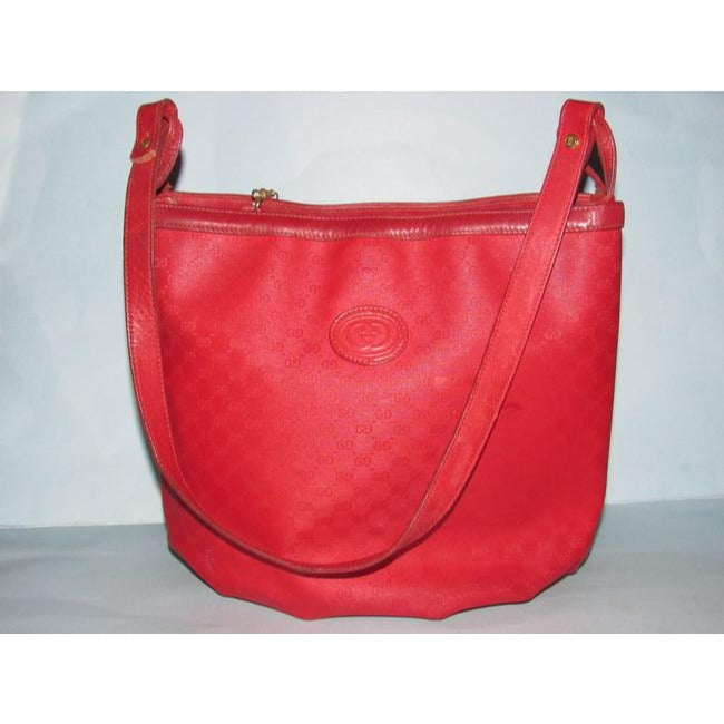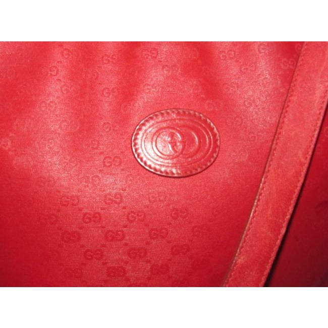 Gucci Vintage Red Small G Logo Coated Canvas And Leather Satchel