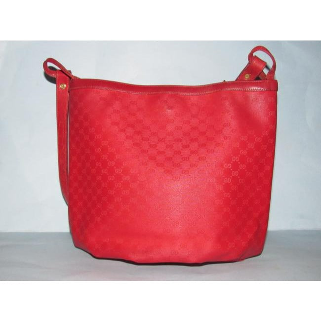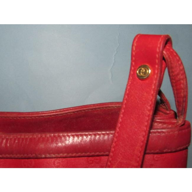 * For sale is a vintage, Gucci, red small G logo coated canvas and leather, ex-large size, bucket style satchel or shoulder bag with multiple interior compartments! It is a unique take on a classic bucket style from Gucci that would be great used as your signature red purse!