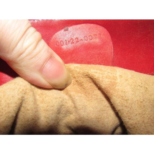 The bag is in excellent vintage condition! The lining is very clean with the exception of the ink stain pictured and discussed above. It is tan and has the suede/felt fabric body most vintage Gucci purses do. It has the true 1960's Gucci mod, bohemian look! There is a tag that reads Gucci , Made in Italy and has a serial #001.22.0077 on the back. Inside, there are three compartments and interior pockets to keep you organized!