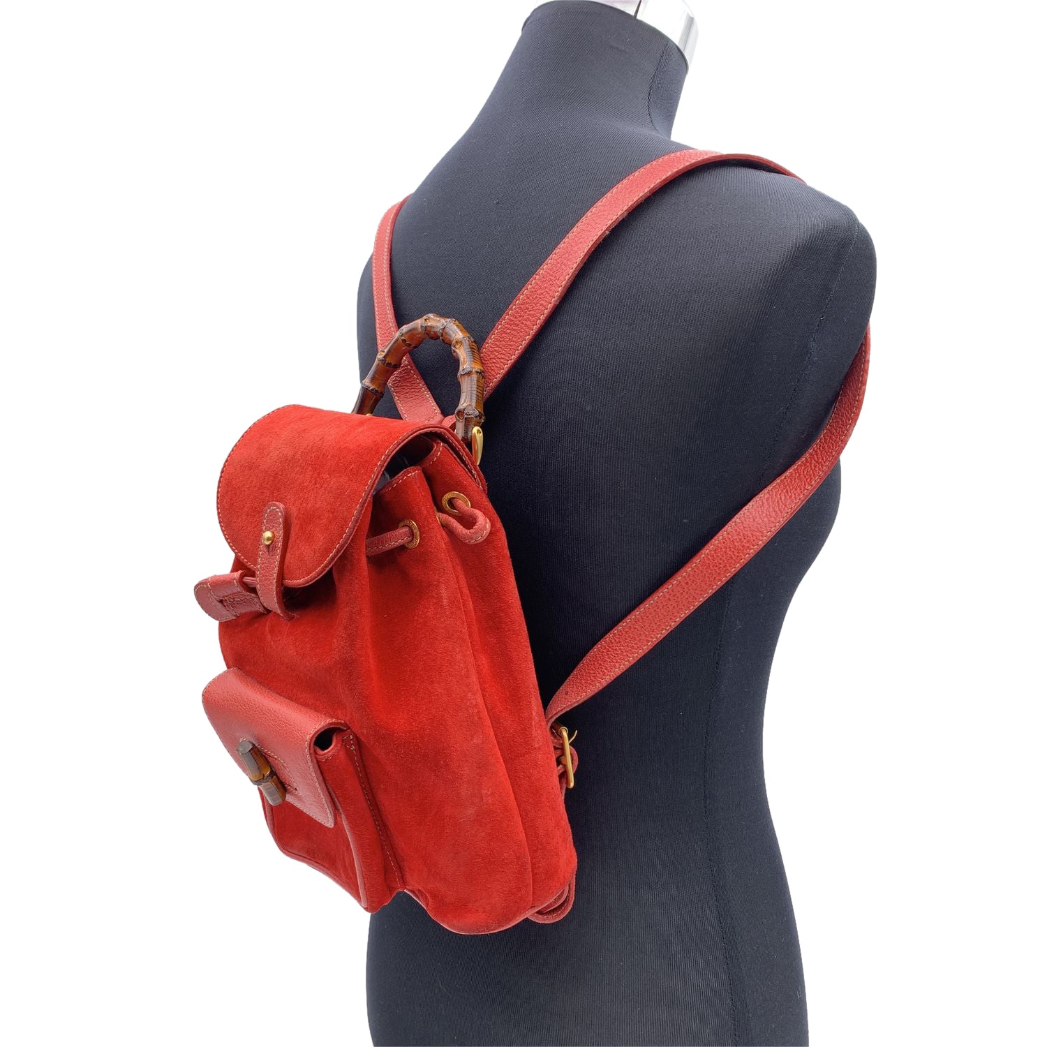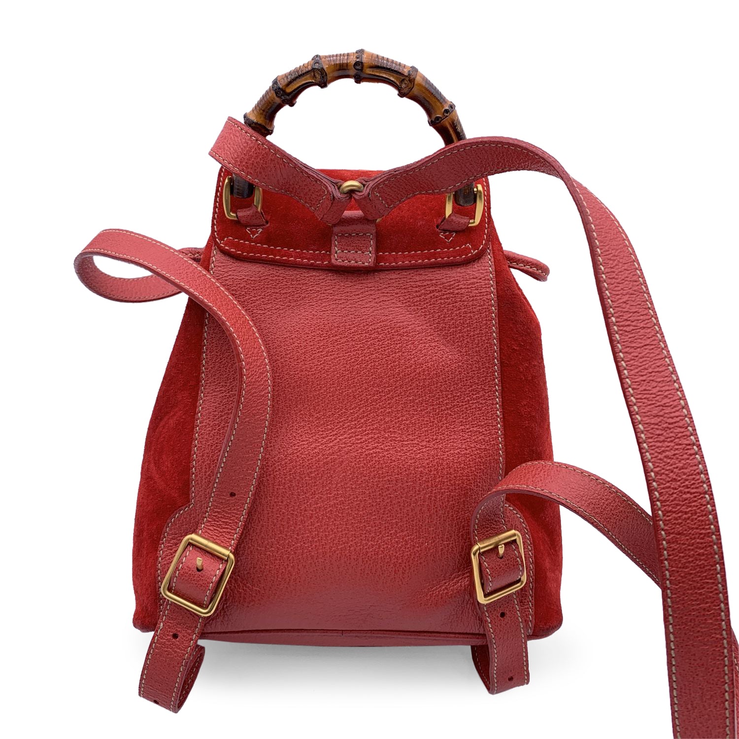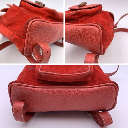 GUCCI Vintage Red Suede Bamboo Small Backpack Shoulder Bag