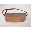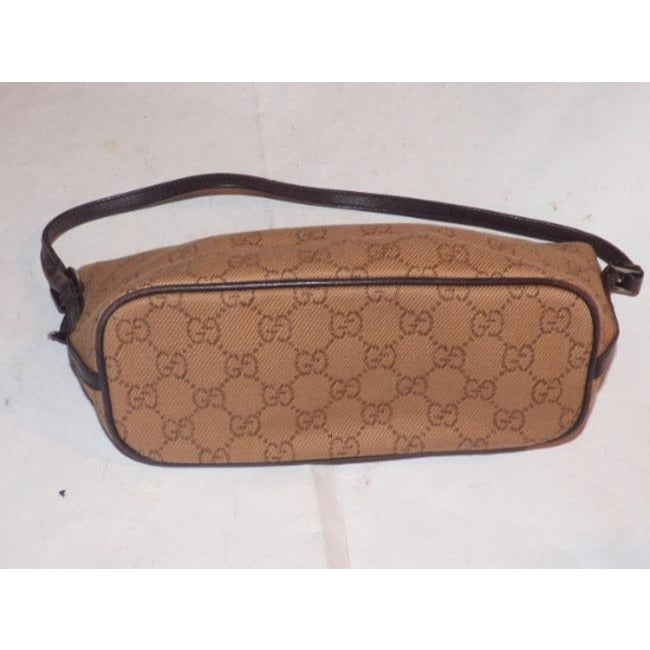 The bag is the perfect hobo by Gucci in a great, everyday style! The exterior is rusty orange canvas fabric with the large G logo design and brown leather. The purse is a smaller size and has chrome accents! It is perfect for a night out or if you travel light!